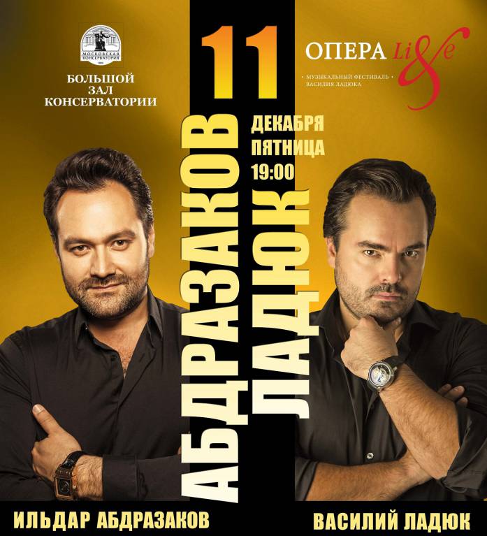 Два выдающихся российских оперных исполнителя с мировой известностью, солист Мариинского театра Ильдар Абдразаков и солист театра «Новая Опера» Василий Ладюк,представят искушенной столичной публике фрагменты из опер четырех гениев итальянской музыки XIX века - Джоаккино Россини, Винченцо Беллини, Гаэтано Доницетти и Джузеппе Верди. Певцам аккомпанирует один из ведущих отечественных оркестров, коллектив с 85-летней историей - Большой симфонический оркестр имени П.И.Чайковского.