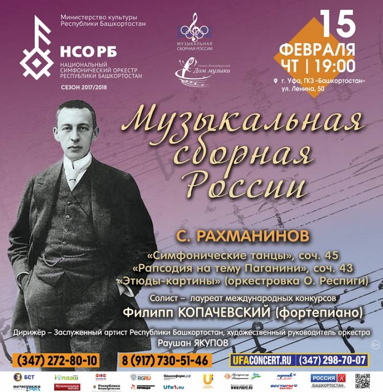 15 февраля, в четверг, солист Санкт-Петербургского Дома музыки Филипп Копачевский вновь выступит в Уфе в рамках цикла «Музыкальная сборная России». На сцене ГКЗ «Башкортостан» молодой пианист выступит с Национальным симфоническим оркестром Республики под управлением Раушана Якупова.